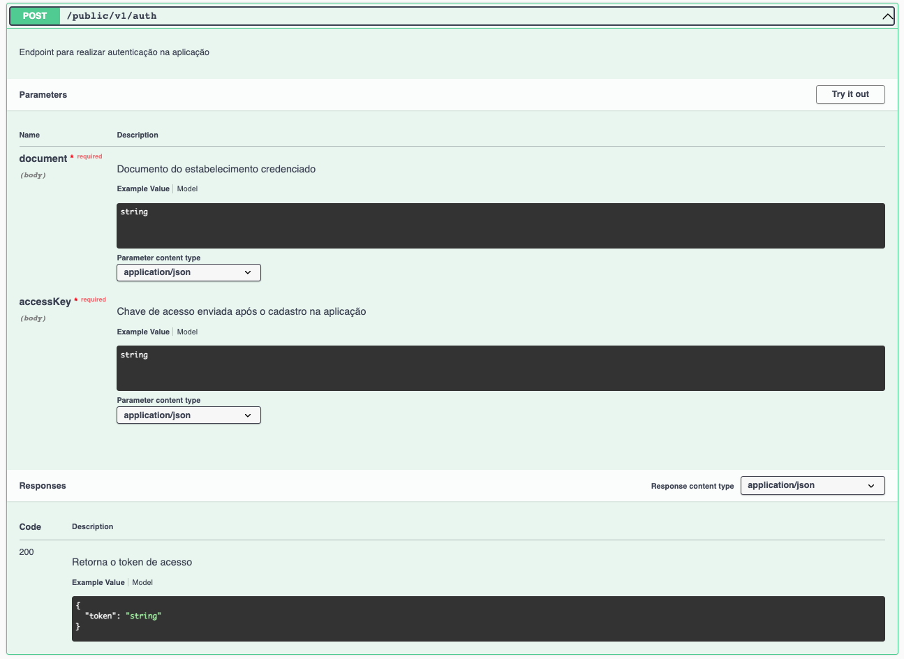 Response – Auth – É o response retornado com o token de acesso e sua liberação.